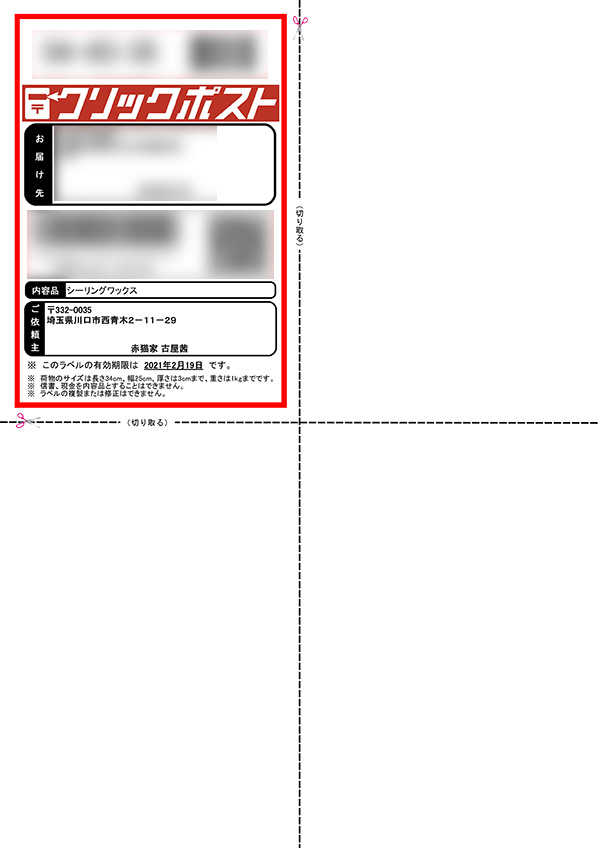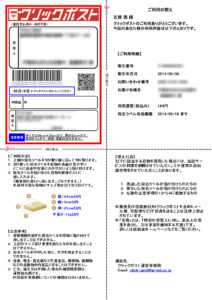 この時はカラーで出力しましたが、モノクロでコピー用紙に出力してテープ留めでずっと発送していました。